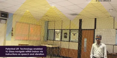 VL Glass that helps visually impaired people navigate their surroundings and do more with greater freedom, independence and confidence. This versatile personal mobility assistant can helping to give all of humankind the freedom to move and continue to make people's lives easier. VL Glass enabled with R-LiFi technology to get navigation information though visible light in indoor environment and it guides visually impaired person through speech and vibration technique